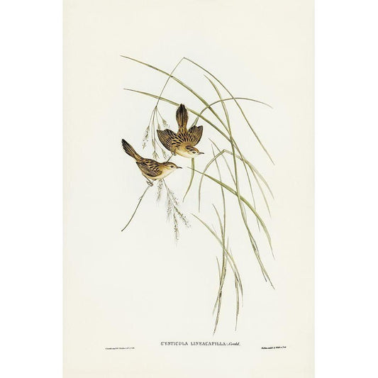 Lineated Warbler-Cysticola lineocapilla Black Modern Wood Framed Art Print with Double Matting by Gould, John
