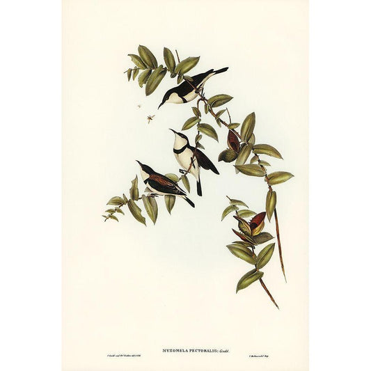 Banded Honey-eater-Myzomela pectoralis Black Modern Wood Framed Art Print with Double Matting by Gould, John