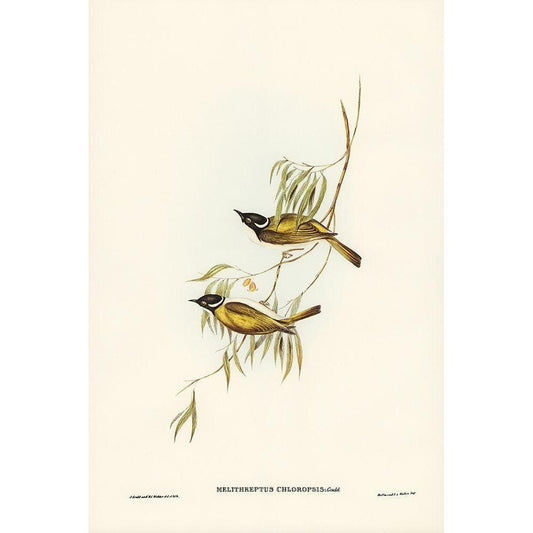 Swan River Honey-eater-Melithreptus chloropsis Black Modern Wood Framed Art Print with Double Matting by Gould, John