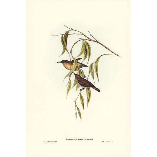 Obscure Honey-eater-Myzomela obscura Black Modern Wood Framed Art Print with Double Matting by Gould, John