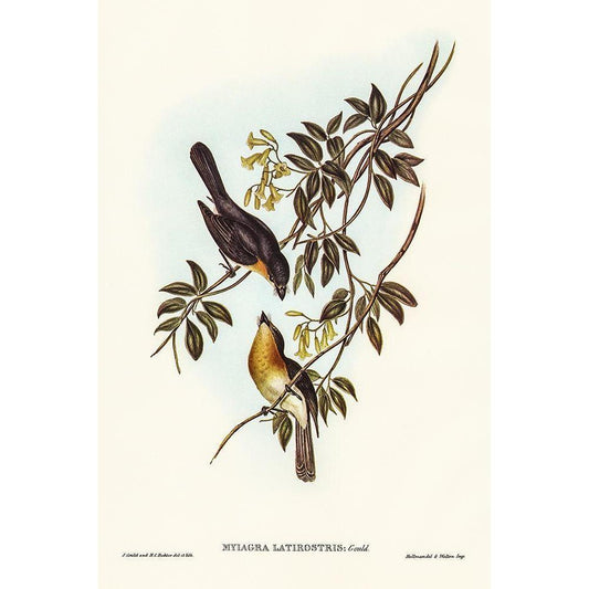 Broad-billed Flycatcher-Myiagra latirostris Black Modern Wood Framed Art Print with Double Matting by Gould, John