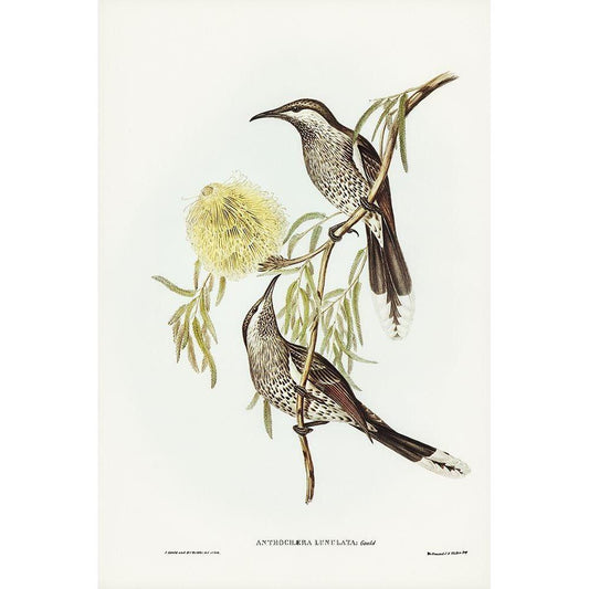 Lunulated Wattle Bird-Anthochaera lunulata Black Modern Wood Framed Art Print with Double Matting by Gould, John