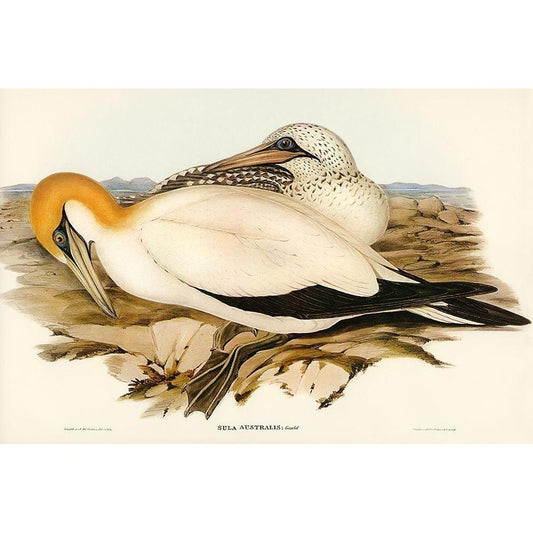 Australian Gannet-Sula Australis Black Modern Wood Framed Art Print with Double Matting by Gould, John