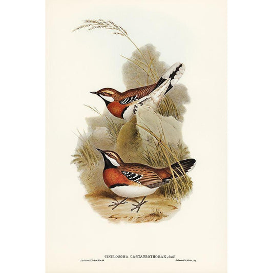 Chestnut-breasted Ground-Thrush-Cinclosoma castaneothorax Black Modern Wood Framed Art Print with Double Matting by Gould, John
