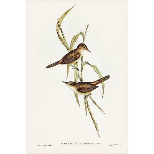 Long-billed Reed Warbler-Acrocephalus longirostris Black Modern Wood Framed Art Print with Double Matting by Gould, John