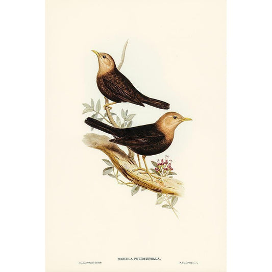 Grey-headed Blackbird-Merula poliocephala Black Modern Wood Framed Art Print with Double Matting by Gould, John