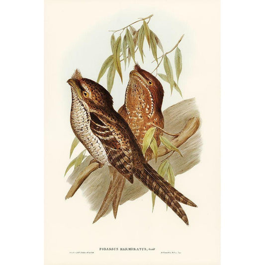 Marbled Podargus-Podargus marmoratus Black Modern Wood Framed Art Print with Double Matting by Gould, John