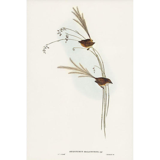 Emu Wren-tipiturus malachurus Black Modern Wood Framed Art Print with Double Matting by Gould, John