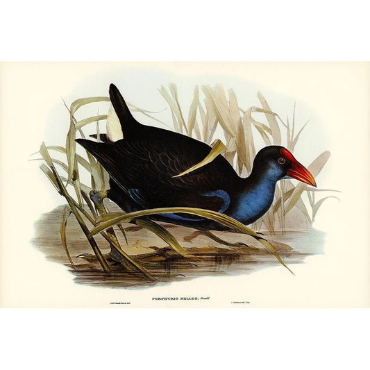 Azure-breasted Porphyrio-Porphyrio bellus Black Modern Wood Framed Art Print with Double Matting by Gould, John