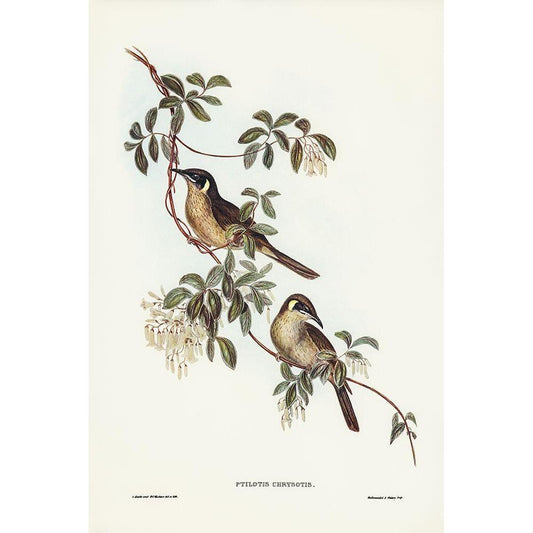 Singing Honey-eater-Ptilotis sonorus Black Modern Wood Framed Art Print with Double Matting by Gould, John
