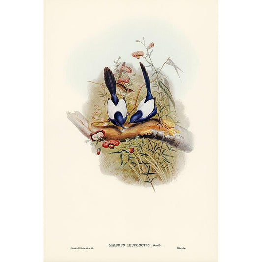 White-backed Superb Warbler-Malurus leuconotus Black Modern Wood Framed Art Print with Double Matting by Gould, John