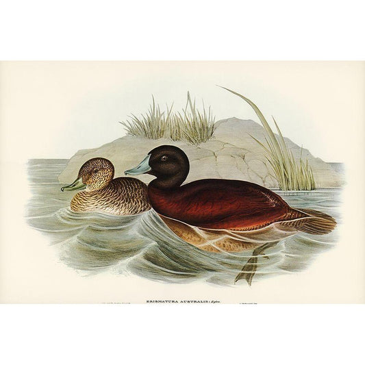Blue-billed Duck-Erismatura Australis Black Modern Wood Framed Art Print with Double Matting by Gould, John