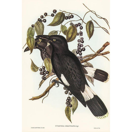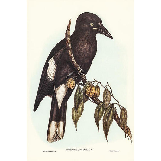 Hill Crow-Shrike-Strepera argot Black Modern Wood Framed Art Print with Double Matting by Gould, John