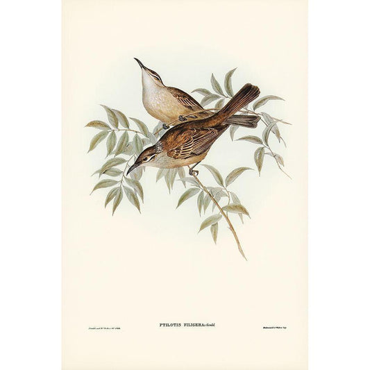 Streaked Honey-eater-Ptilotis filigera Black Modern Wood Framed Art Print with Double Matting by Gould, John