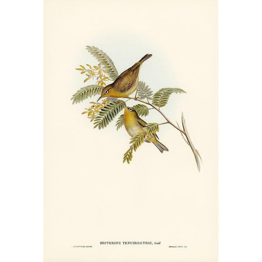 Slender-billed Zosterops-Zosterops tenuirostris Black Modern Wood Framed Art Print with Double Matting by Gould, John