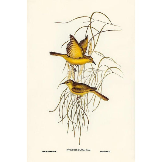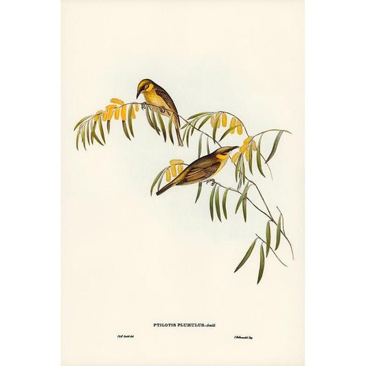 Yellow Honey-eater-Ptilotis flava Black Modern Wood Framed Art Print with Double Matting by Gould, John