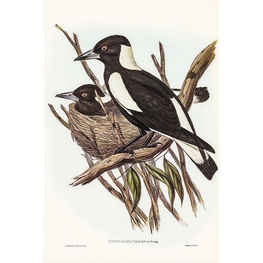 Piping Crow-Shrike-Gymnorhina Tibicen Black Modern Wood Framed Art Print with Double Matting by Gould, John