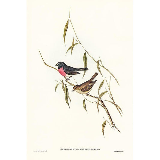 Pink-breasted Wood-robin-Erythrodryas rhodinogaster Black Modern Wood Framed Art Print with Double Matting by Gould, John