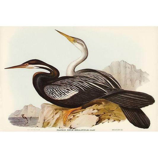 New Holland Darter-Plotus Novae-Hollandiae Black Modern Wood Framed Art Print with Double Matting by Gould, John