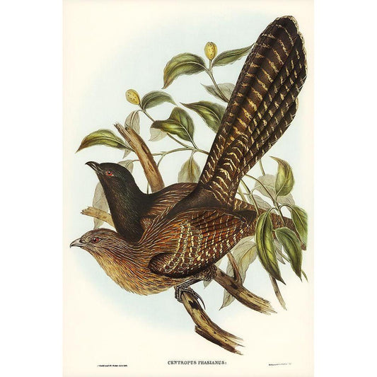 Pheasant Cuckoo-Centropus Phasianus Black Modern Wood Framed Art Print with Double Matting by Gould, John