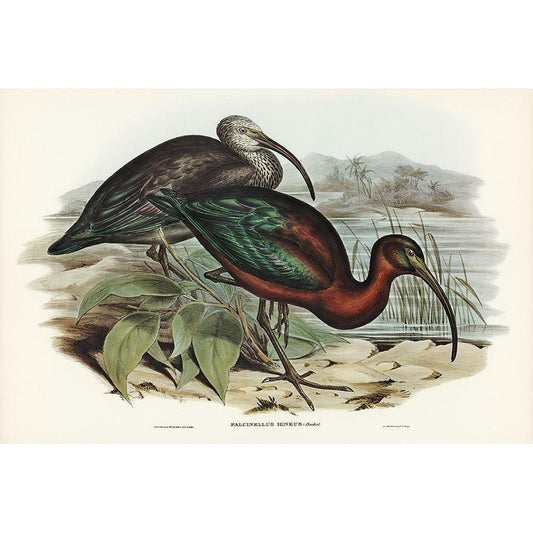 Glossy Ibis-Falcinellus igneus Black Modern Wood Framed Art Print with Double Matting by Gould, John