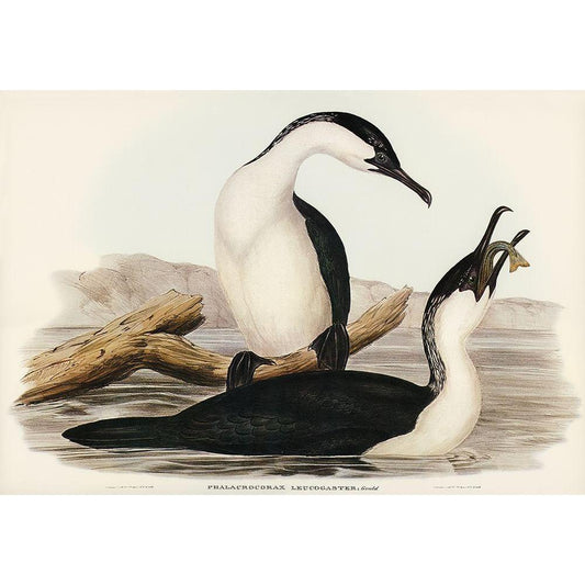 White-breasted Cormorant-Phalacrocorax leucogaster Black Modern Wood Framed Art Print with Double Matting by Gould, John