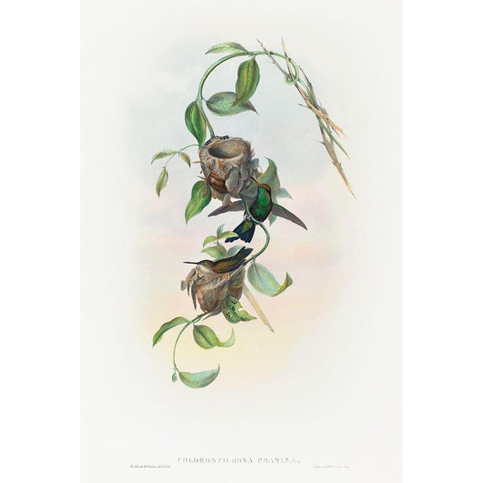 Phaethornis Griseogularis Black Modern Wood Framed Art Print with Double Matting by Gould, John