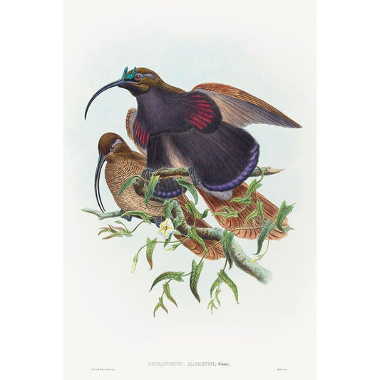 Drepanornis albertisi-Black-billed Sicklebill Bird of Paradise Black Modern Wood Framed Art Print with Double Matting by Gould, John