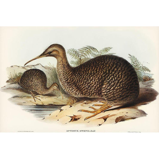 Little spotted kiwi or Little gray kiwi-Apteryx Owenii Black Modern Wood Framed Art Print with Double Matting by Gould, John