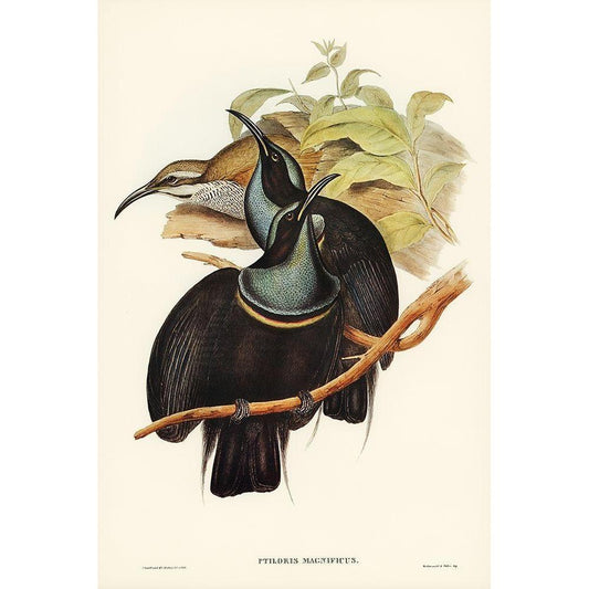 Magnificent Rifle-bird-Ptiloris magnifica Black Modern Wood Framed Art Print with Double Matting by Gould, John