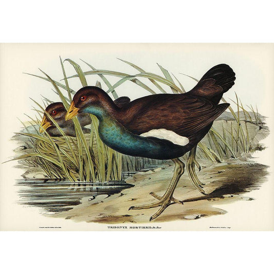 Tasmanian nativehen Mortiers Tribonyx-Tribonyx Mortieri Black Modern Wood Framed Art Print with Double Matting by Gould, John