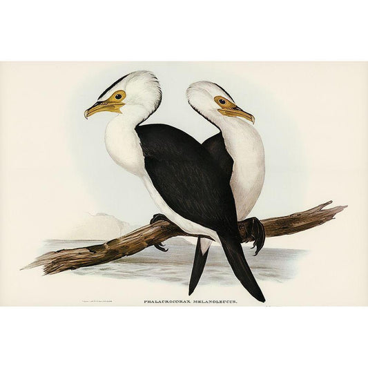 Little pied cormorant-Phalacrocorax melanoleucus Black Modern Wood Framed Art Print with Double Matting by Gould, John