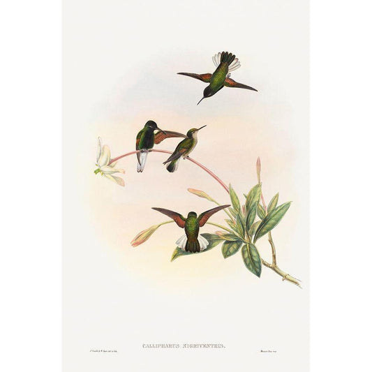 Callipharus nigriventris-Black-bellied Hummingbird Black Modern Wood Framed Art Print with Double Matting by Gould, John