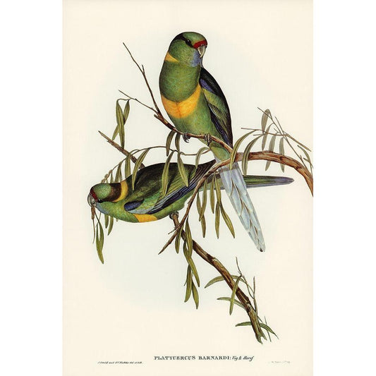 Barnards Parakeet-Platycercus Barnardii Black Modern Wood Framed Art Print with Double Matting by Gould, John