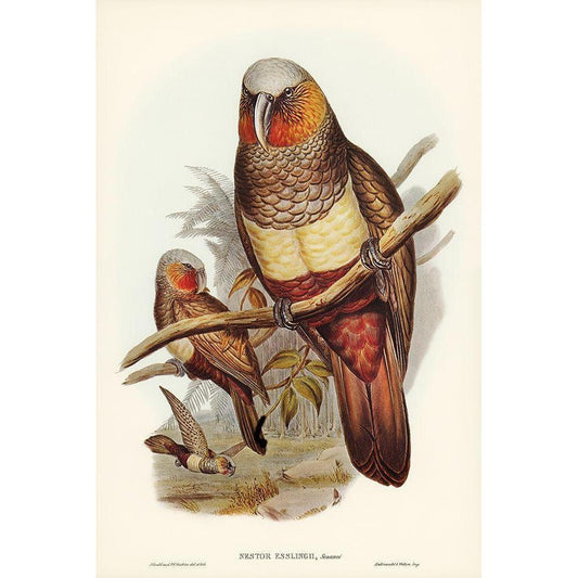 Prince of Esslings Parrot-Nestor Esslingii Black Modern Wood Framed Art Print with Double Matting by Gould, John