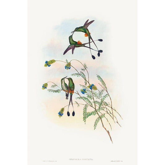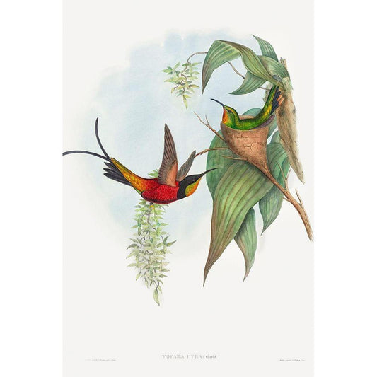 The family of hummingbirds Black Modern Wood Framed Art Print with Double Matting by Gould, John