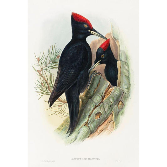 Great Black Woodpecker-Dryocopus martius Black Modern Wood Framed Art Print with Double Matting by Gould, John