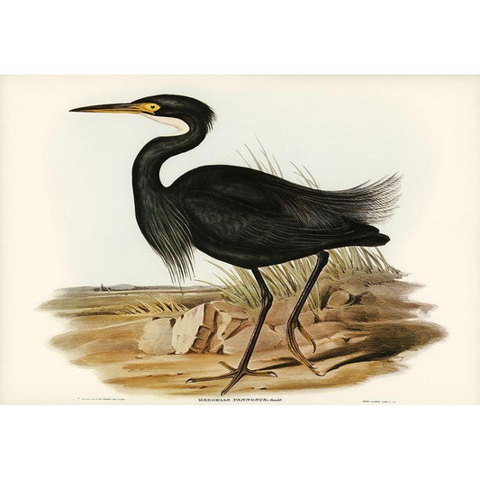 Sombre Egret-Herodias pannosus Black Modern Wood Framed Art Print with Double Matting by Gould, John