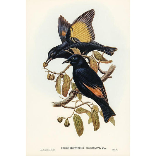 Rawnsleys Bower-bird-Ptilonorhynchus Rawnsleyi Black Modern Wood Framed Art Print with Double Matting by Gould, John