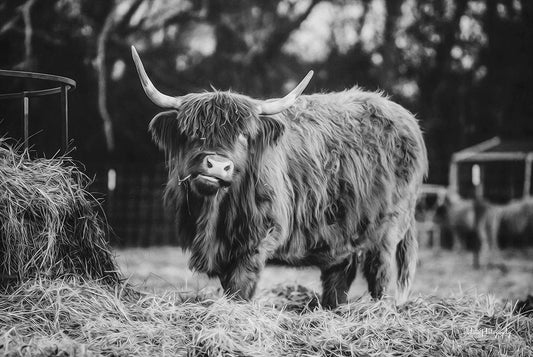 Highland Pose White Modern Wood Framed Art Print with Double Matting by Diener, Dakota