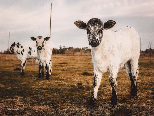 Three Calves White Modern Wood Framed Art Print with Double Matting by Diener, Dakota
