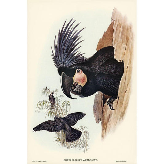 Great Palm-Cuckatoo-Microglossus aterrimus Black Modern Wood Framed Art Print with Double Matting by Gould, John