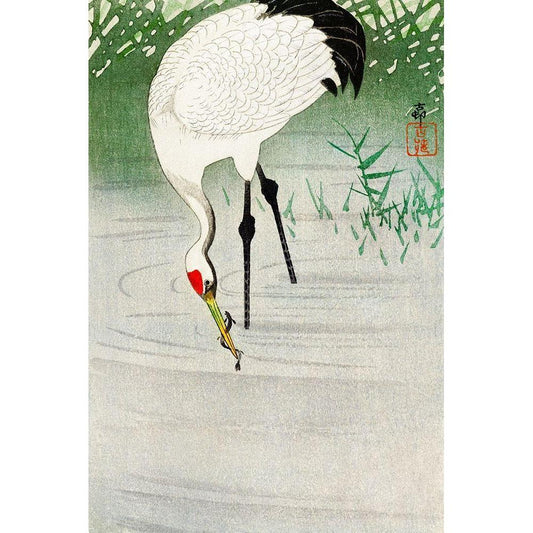 Fishing crane in shallow water Black Modern Wood Framed Art Print with Double Matting by Koson, Ohara