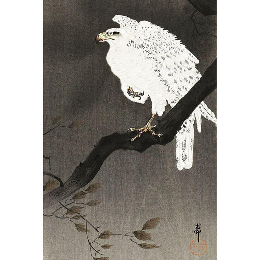 Snowy eagle on a tree branch Black Modern Wood Framed Art Print with Double Matting by Koson, Ohara