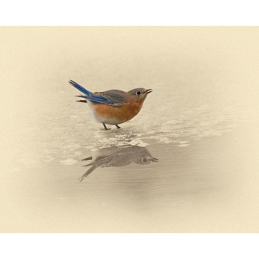 Blue Bird On Ice Black Modern Wood Framed Art Print with Double Matting by Brown, Jim