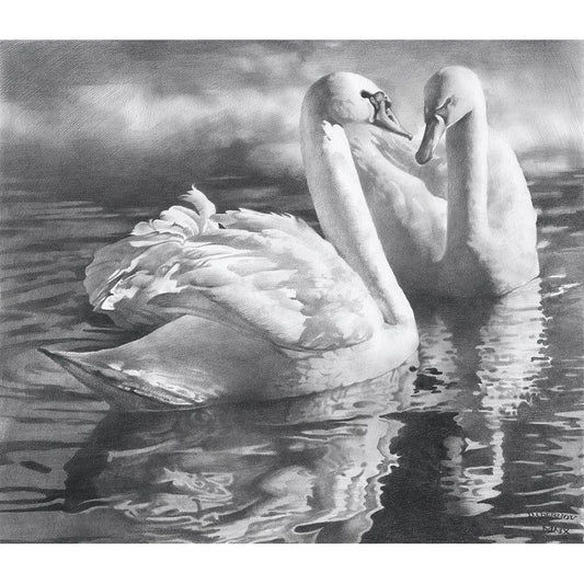 Two swans Black Modern Wood Framed Art Print with Double Matting by Chernov, Denis