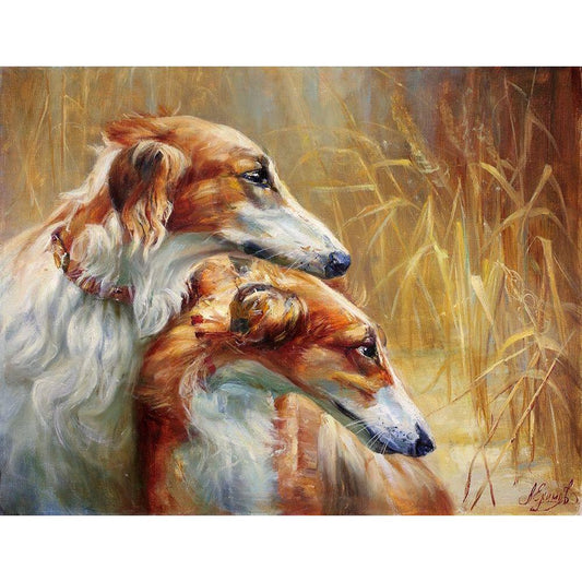 Russian greyhounds on the hunt Black Modern Wood Framed Art Print with Double Matting by Ekimov, Vladimir