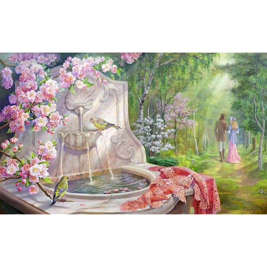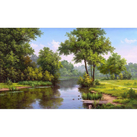 Landscape with ducks Black Modern Wood Framed Art Print with Double Matting by Babichev, Vyacheslav