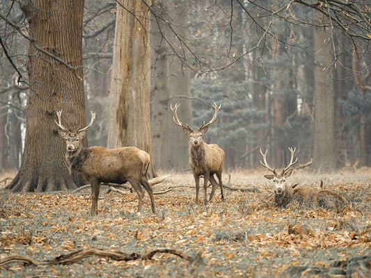 Stags in the forest White Modern Wood Framed Art Print with Double Matting by Frank, Assaf
