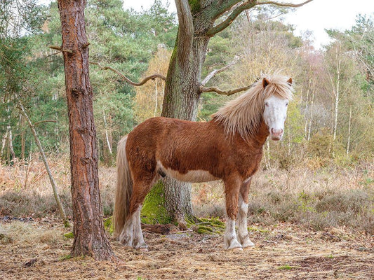Horse in forest White Modern Wood Framed Art Print with Double Matting by Frank, Assaf